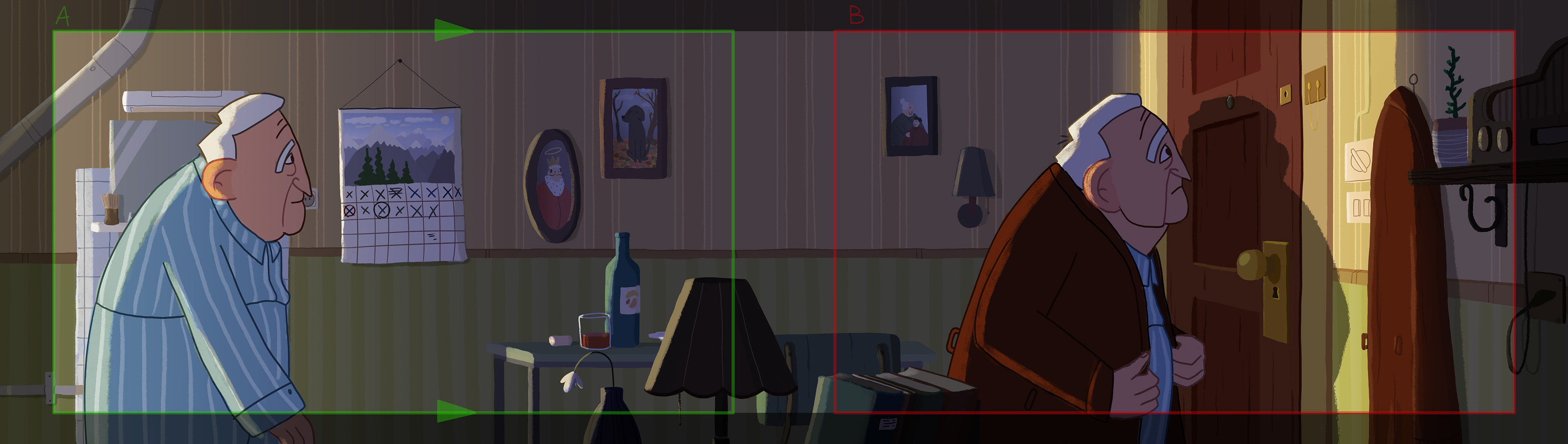 A narration exercise about an old man encountering a little pigeon. With an emphasis on Art Direction, Character Design, Storyboard and Layout. Based on Patrick Süskind's "the Pigeon".